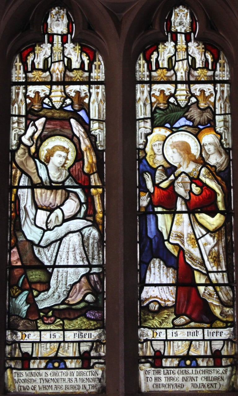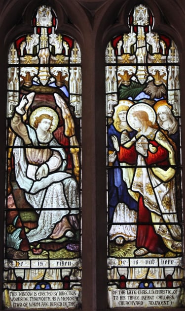 Dedication This window is erected by the direction of the late Chas J D Christie of Woodside, Tynemouth as a memorial to his three infant children (two of whom are buried in the churchyard adjacent.)
