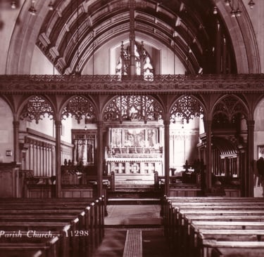 The Church originally contained a Nave, North aisle, a short chancel, small north vestry and SW porch. 16 years later in 1864, to accommodate the growing population of the area, a larger 5 light window added, a tower and spire and south aisle were also added with a shallower south porch and cross gables along south aisle wall. In 1880 the vestry was also greatly enlarged. In 1902-3, due to the generosity of Charles William Mitchell, son of a local shipbuilder, the Chancel was extended eastwards a further 13 feet. The whole of the Chancel was panelled in Austrian oak, new choir stalls were put in and electric lighting installed throughout the Church. The entire Church was also re-roofed. Colonel Henry Frederick Swan supplied a new organ case and frontals to match the new panelling in the Chancel. Similar panels were also provided in the aisle at the side of the organ case.