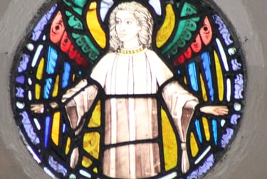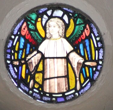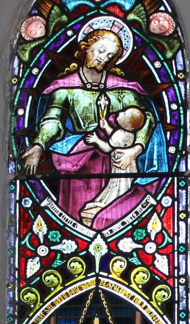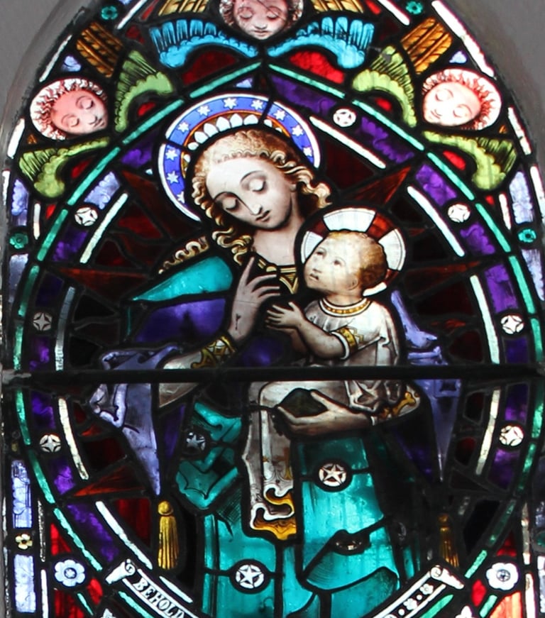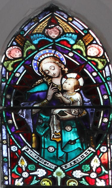 The above window was erected by Henry F Swan of this parish in memory of his faithful and affectionate wife Mary Calvert Swan who died March 28th 1869 aged 27 years also their infant son Henry Mitchell Swan who died July15th 1868 aged 5 months.