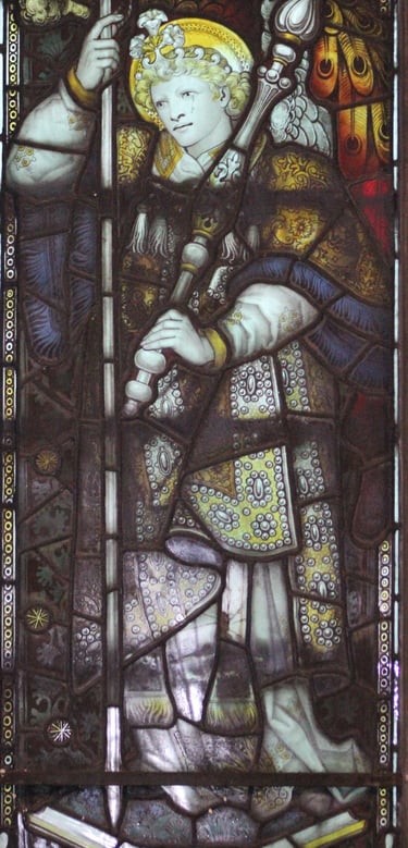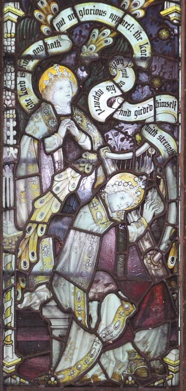 Charles Eamer Kempe was born in 1837 close to Brighton and brought up in the Church of England at the time of the Tractian revival in Church. He had hoped to be a clergyman but while studying at Oxford University it became apparent that, because of a speech impediment, he could not realise his ambition and so decided that if "he could not minister in the Sanctuary, he would use his talents to adorn it." To this end he worked firstly as an architect and was soon trusted to work on his own walls and ceilings of churches but it was to stained glass that Kempe was drawn and so went to work for the highly respected glass studio of Clayton and Bell.