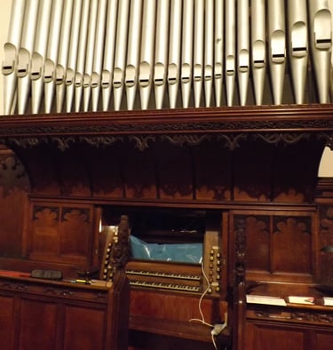 The main deep sound from the organ was produced from large rectanglar wooden pipes