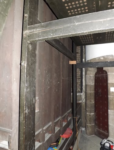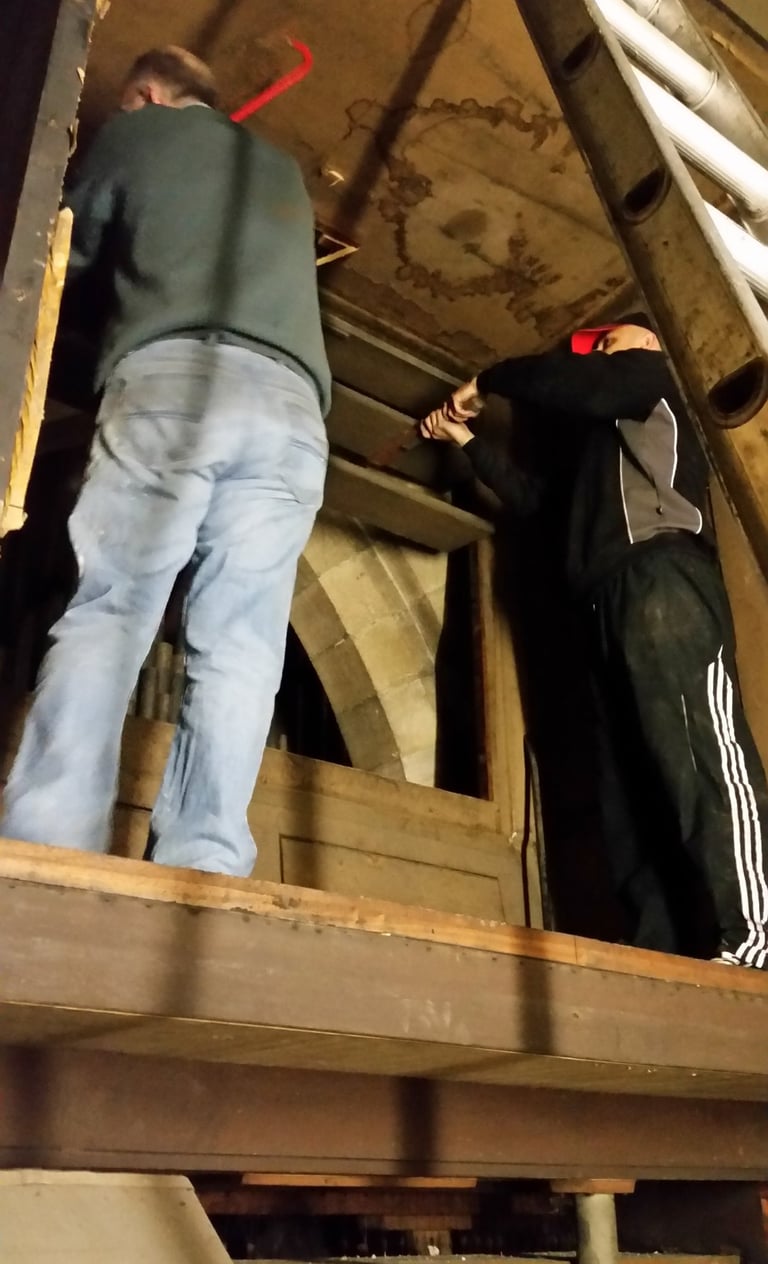 Sadly, the majestic Forster and Andrews Organ in our Church was irreparably damaged by water some years ago. The cost of attempting a repair was prohibitive and we were unable to find a buyer for the unit. We had hoped that one of the (declining number of) specialist organ repair companies might have been interested, but sadly no-one wanted it. With heavy hearts, the PCC took the decision to submit an application to remove the organ and permission for this was subsequently granted by the Diocese. The pictures below show some of the work involved in removing the organ. The whole project took almost two months.